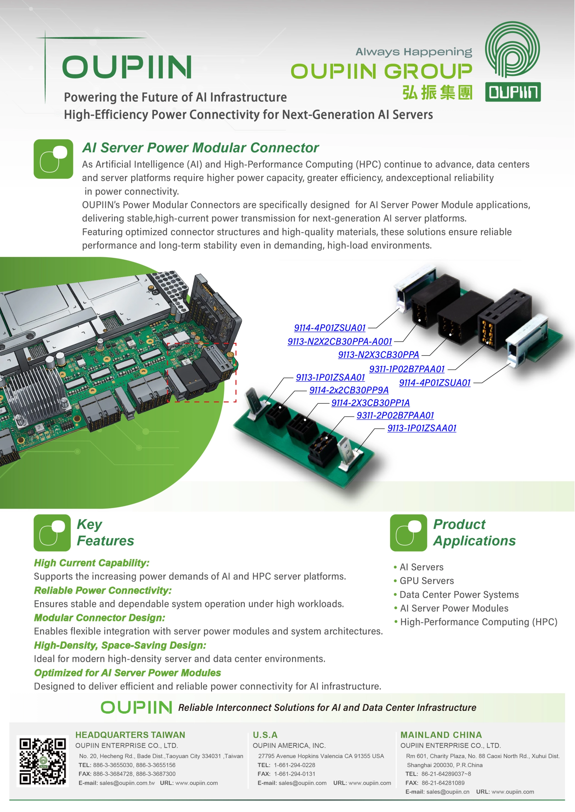 AI Server Power Module Connectors AI Server Power Solution